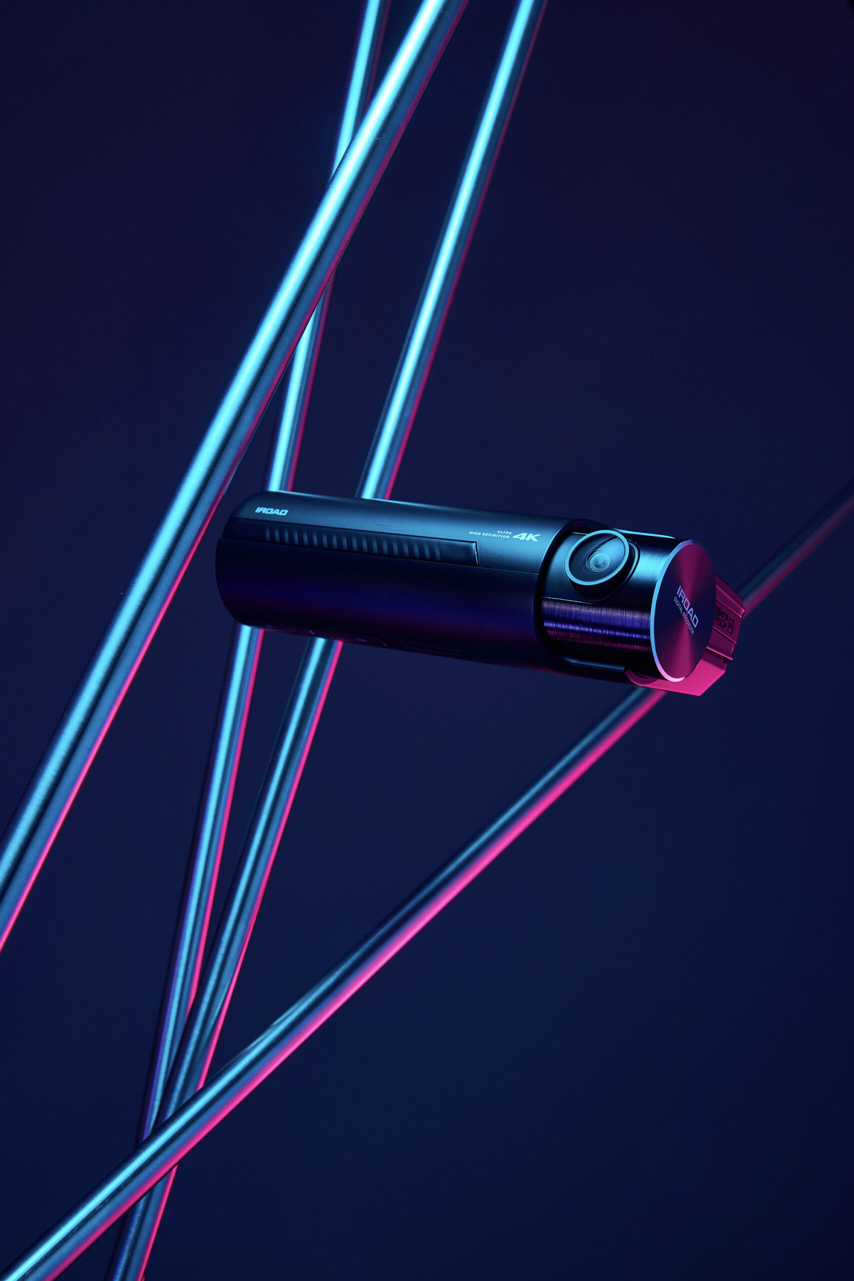 IROAD NX1000 Dashcam Photography P-Product Pieces Highlighting the IROAD NX1000 dashcam with creative lighting and color styling